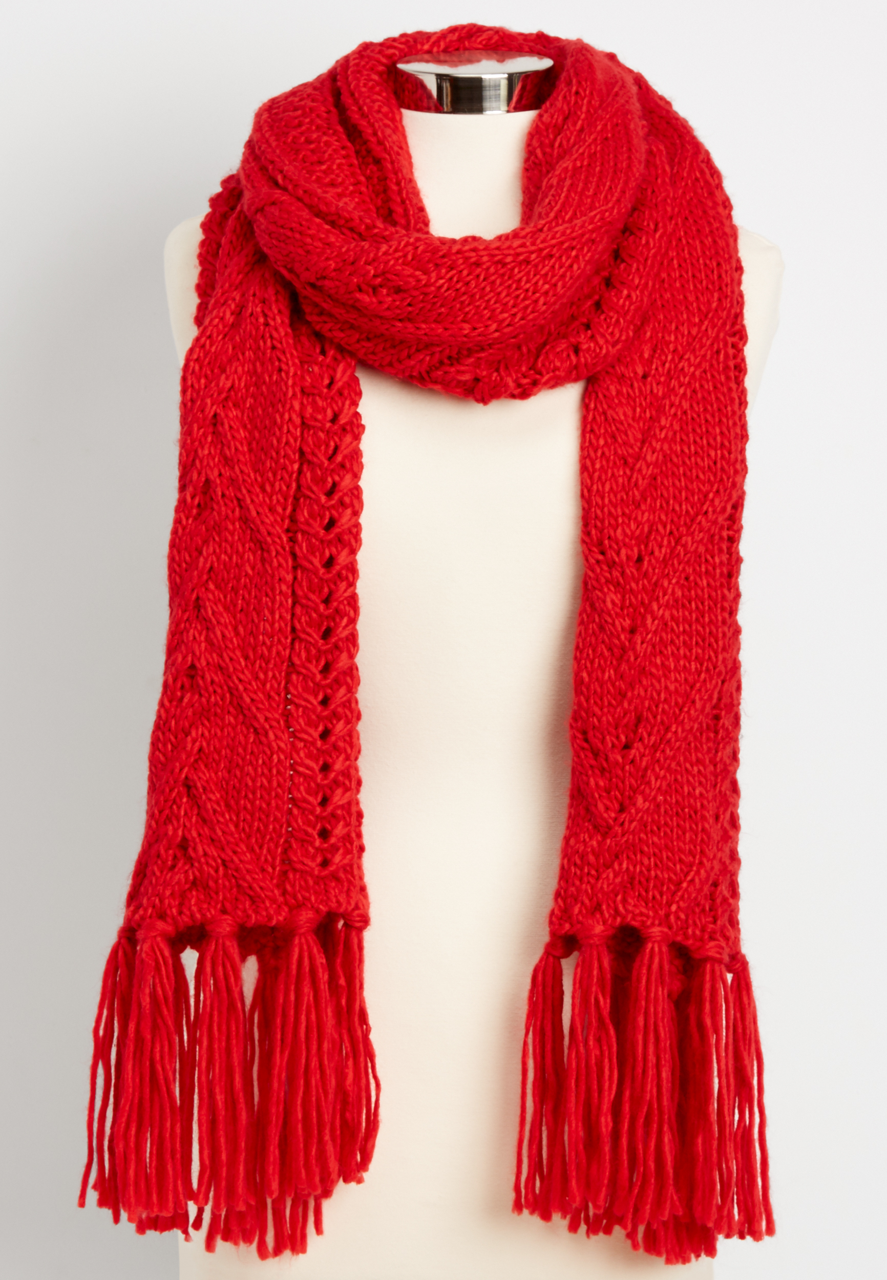a red box containing: a knitted red cat stuffed animal with magnets in the paws, a red sweater with DAVE on the front, a red scarf with music notes in white on it, a cozy red sleeve thing for his sunglasses (labeled SUNGLASSES COZY), and a christmas card that plays jingle bell rock. ]